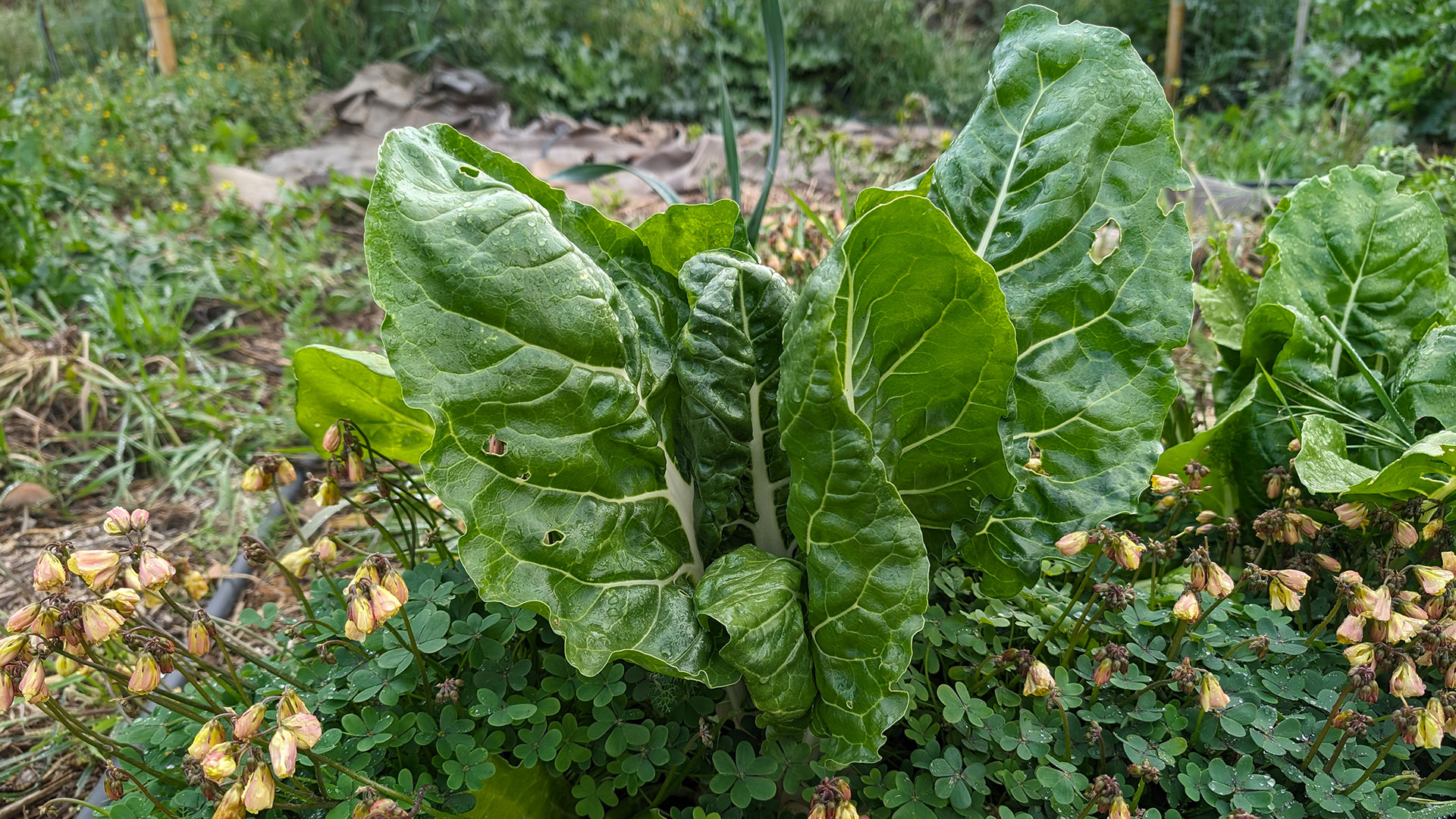Aunque la idea de intercalar hortalizas entre los árboles de nuestro bosque comestible parecía idílica, el clima riguroso supuso un reto. El riego diario, necesario para las hortalizas que necesitan mucho sol, chocaba con nuestras limitadas prácticas de riego dentro del bosque comestible. Esperamos volver a plantearnos este concepto cuando nuestros árboles proporcionen más sombra y ofrezcan protección contra el sol implacable.